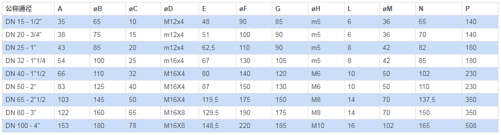 工作壓力:PN 40至DN50 PN16以上