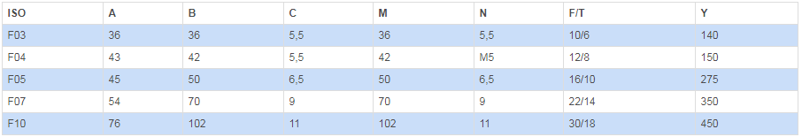 | (**):閥門沒有符合ISO F04的連接口 |