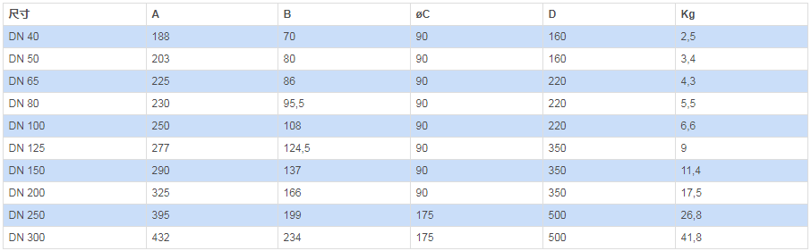 可提供的產(chǎn)品規(guī)格:從公稱通徑DN 40 至 DN 300 ,PN 10 - PN 16