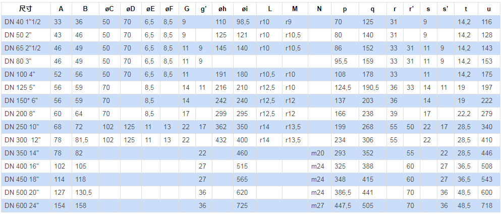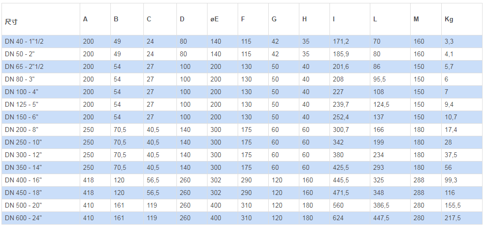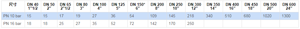 法蘭標準:型號PN 10 - PN 16 - ANSI 150不銹鋼: 公稱通徑從 DN 40 至 DN 300。